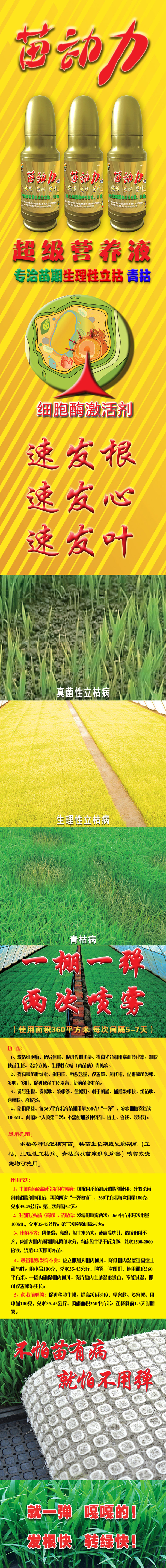 1、激活細(xì)胞酶、誘導(dǎo)休眠、促進(jìn)代謝功能、提高光合利用率和轉(zhuǎn)化率、加快秧苗生長(zhǎng)。治療立枯、生理性立枯(黃苗病)青枯病。